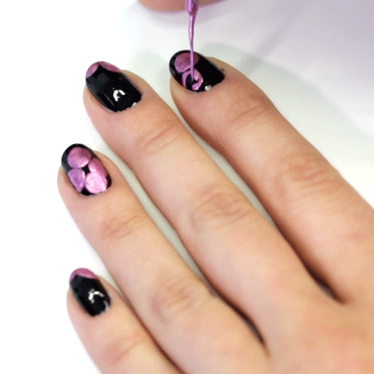 Step 2: Use a striping brush and metallic pink polish to paint a cluster of four circles on the