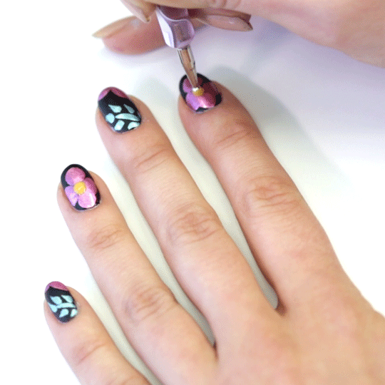 Step 4: Dot the center of the flower with yellow polish. Skip top coat.
