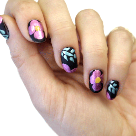 Here is a spring nail art inspired by the season's coolest prints. Up first: '70s florals.